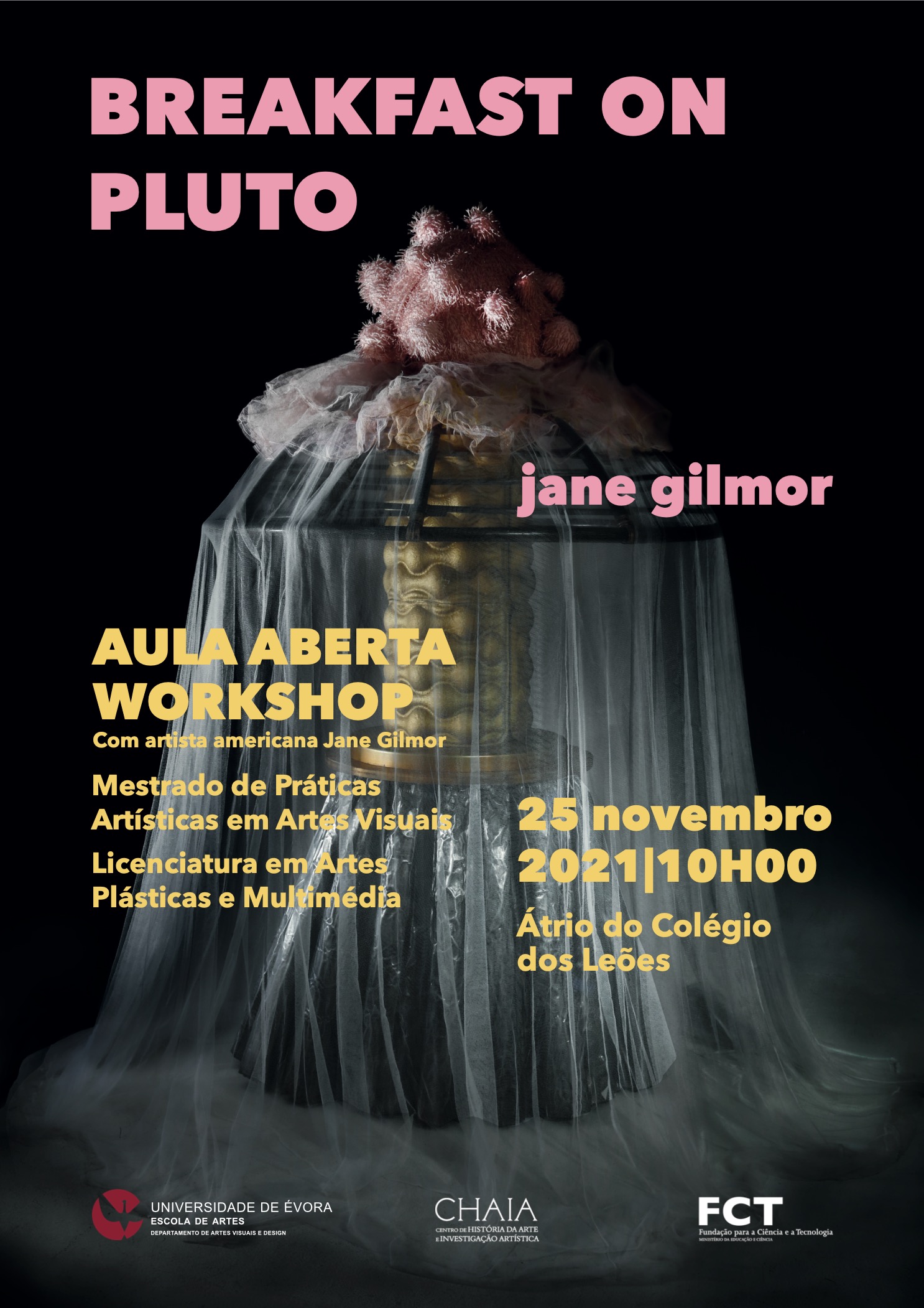 Aula Aberta e Workshop a serem realizados pela artista visual, e Professora Catedrática Emérita, Jane Gilmor, da Mount Mercy University, Cedar Rapids, USA, com os alunos da Licenciatura em Artes Plásticas e Multimédia e com os alunos de Mestrado em Práticas Artísticas em Artes Visuais.